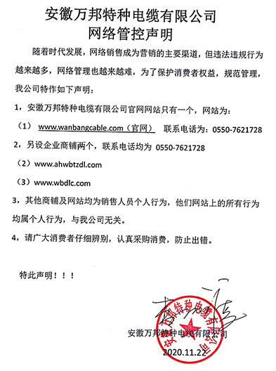 鄭重聲明:安徽萬邦特種電纜有限公司官方網站為:www_wanbangcable_com.chaomeigou.cn,除此之外無任何子網站或合作網站,其余均為假冒偽劣。電話:0550-7621728 13485756353 地 址:安徽省天長市滁州高新技術產業開發區經四路29號